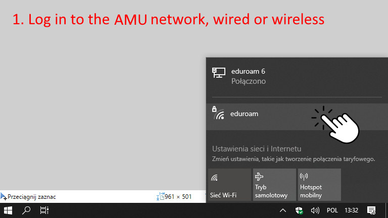 1. Log in on AMU premises